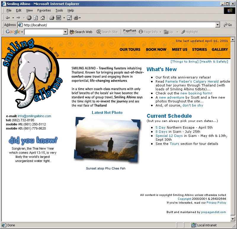 For now, enjoy a few photos of the early days of Smiling Albino, when cofounders Dan and Scott were powered by little more than youthful energy, unreasonable curiosity, the occasional Red Bull, and an insatiable desire to show people a different part of the world, differently.